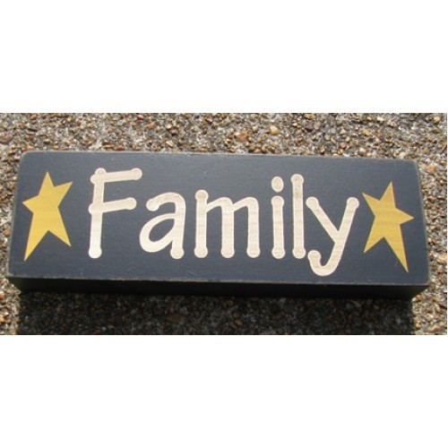 8W1565F - Family wood block, measures 6 inches wide by 1 3/4 inches high