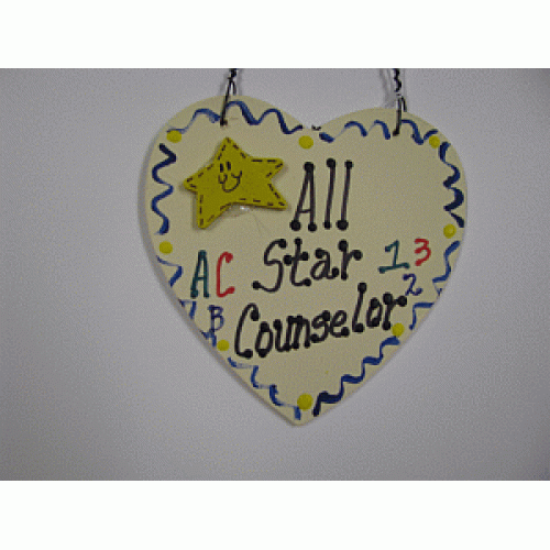 Perfect gift for that special school employee. Heart Shaped with a Yellow Star. Let that school employee know that they are an All-Star. This heart has All Star Counselor written on it. Handmade in Laporte, Texas