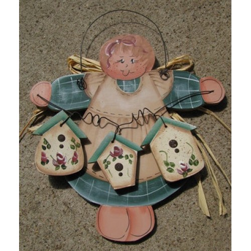 Country Crafts Hanging Angel with 3 birdhouses across the front of her dress.