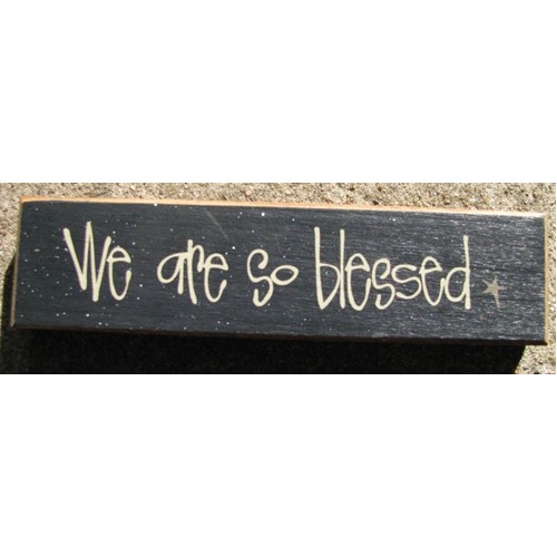 82186W - We are So Blessed Wood Block, measures 7 inches long by 1 1/2 inches high. Painted black with off white lettering