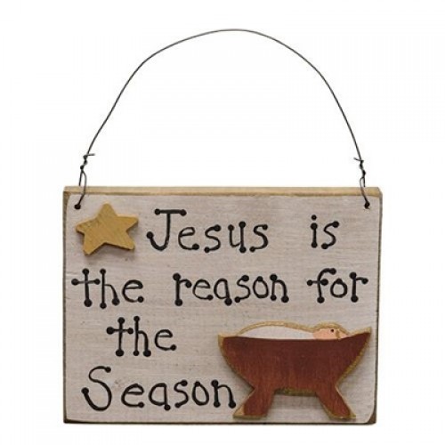 Jesus is the Reason Hanging Block is a wooden plaque that hangs from a metal hanger