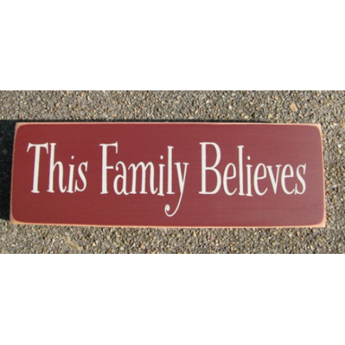 This Family Believes is stenciled in White.