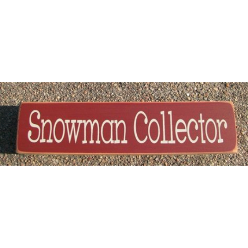 Snowman Collector Block is Stained on Back & Sides. The front is painted Burgundy . Snowman Collector is stenciled in White. Made in America. Size 8 inches by 2 inches Finish: Sanded edges create a worn look.