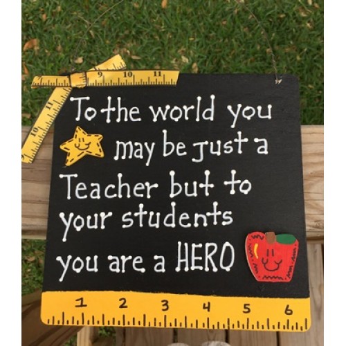 Teacher Gifts PS0800 - To the World Hand painted sign that says To the World you may be just a Teacher but to your students you are a HERO