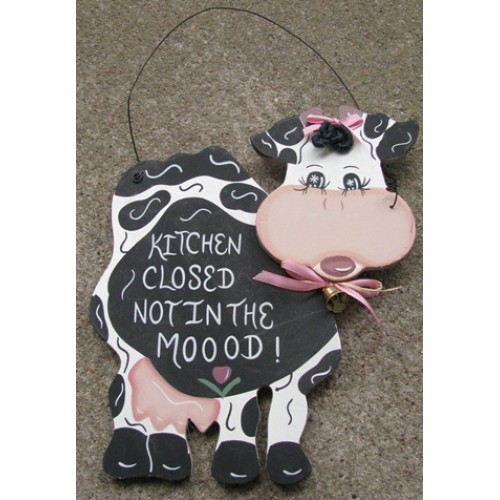 WD466- Cow Kitchen Closed not in the Mood, measures 7" x 8"and hangs by wire