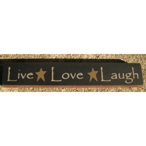 32327LB-Live Love Laugh wood block, MINI wood block, measures 6 inches wide by 1 inch high, black in color with off write writing