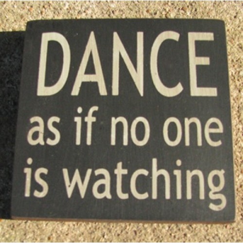 32343DB -Dance as if no one is watching, wood block, measures 4 inches high by 4 inches wide. Black in color with off white lettering