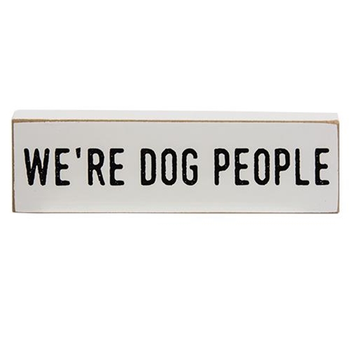 We're Dog People Mini Block Block is made of wood and features a white finish with distressed edges. It reads, "we're dog people," in black text and it is perfect for dog lovers everywhere. Measures 1.5" high by 5" wide by .5" deep.