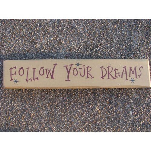 9007FYD- Follow Your Dreams, wood block,measures 9 inches by 1 3/4 inches high. Cream in color with burgundy lettering.