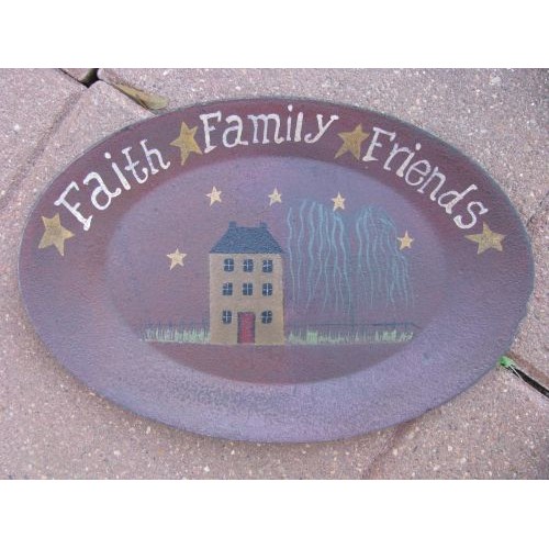3W9652L-Faith Family Friends Wood Plate, measures 13 inches wide by 8 1/2 inches high, oval plate for decorative use only