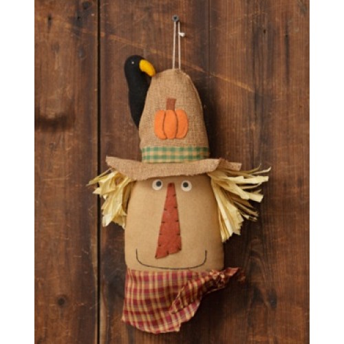 6D3193 - Scarecrow Fabric Head with crow measures 12 inches high