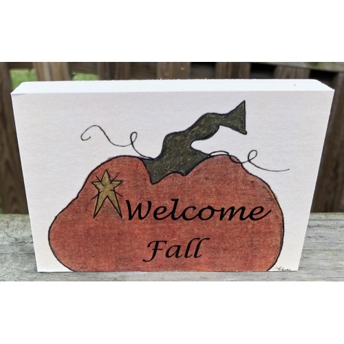 Wood Block - Welcome Fall measures 3 1/2 inches high by 5 inches wide Handmade in Amerca