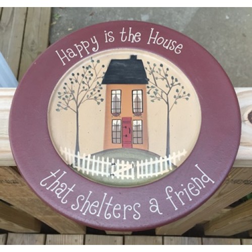 31662H - Happy is a House that shelters a friend wood plate, measures 9 1/2 inches diameter