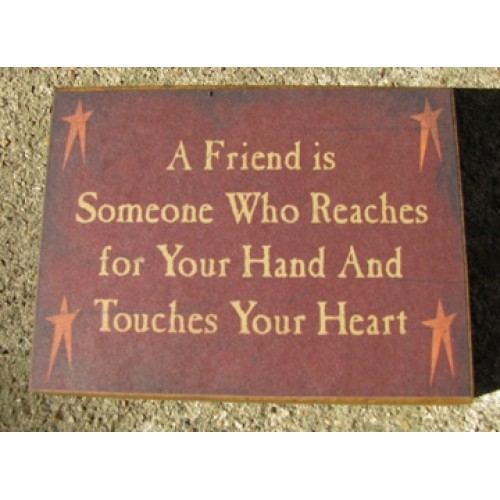 bj104B- A friend is someone who reaches for your hand and touches your heart wood block and measures 4 inches wide by 3 inches high handmade in America