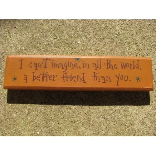 m9902i I can't imagine, in all the world, a better friend than you wood block, measures 9 inches wide by 2 inches high. Painted orange with burgundy writing.