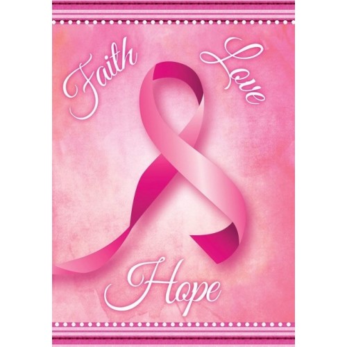 Faith Hope and Love Pink Ribbon Garden Flag. Measures 12 inches by 18 inches