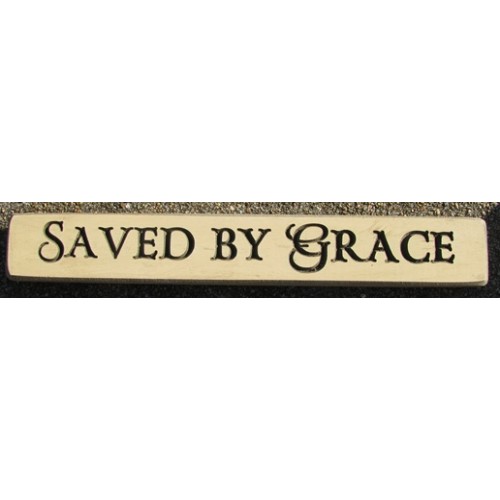 533SBG - Saved By Grace engraved wood Block, measures 12 inches wide by 1 1/2 inches high, cream in color and Handmade in America