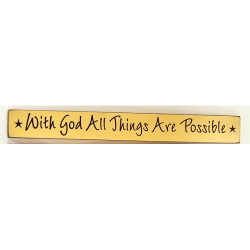 90105WC- With God all things are Possible engraved wood block sign, measures 36 inches wide by 4 inches high, Handmade in America