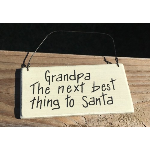 RO488G - Grandpa the next best thing to Santa Wood Hanging Sign, measures 4 inches wide by 2 inches high