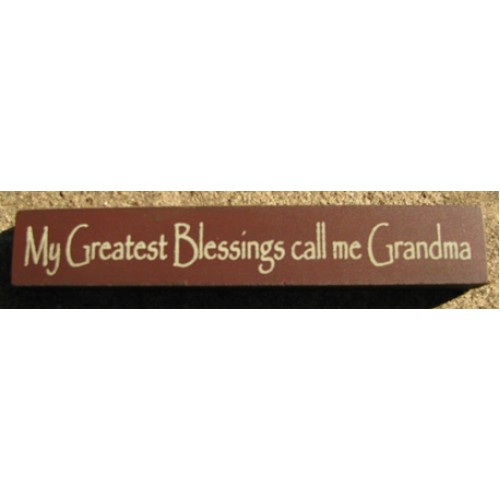 32314BM - My Greatest Blessings call me Grandma wood block, measures 6 inches wide by 1 inch high, Burgundy in color with white letters.