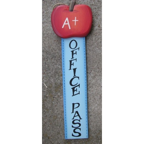 92447OP - Office Wood Pass, Measures 4 1/4 inches wide by 13 3/4 inches high. Hangs by jute