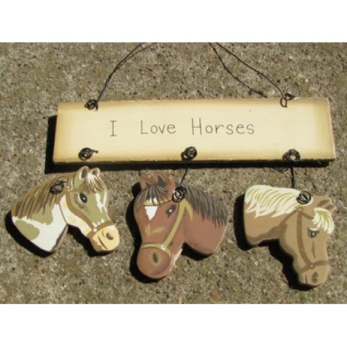wd1239 - I Love Horses Wood Sign, measures 6 inches wide by 4 inches high, hangs by wire