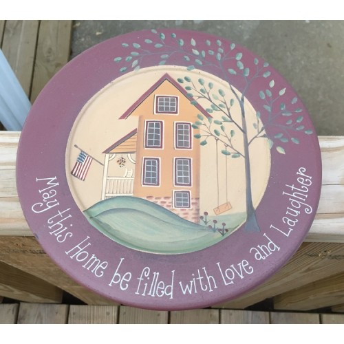 May this Home be filled with love and laughter ...Primitive Wood Plate 9 1/2" diameter Plate reads: "May this home be filled with love and laughter"