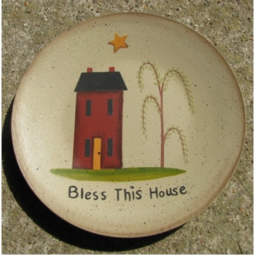 NEW-9 Bless This House Wood Plate, measures 6 inches in diameter