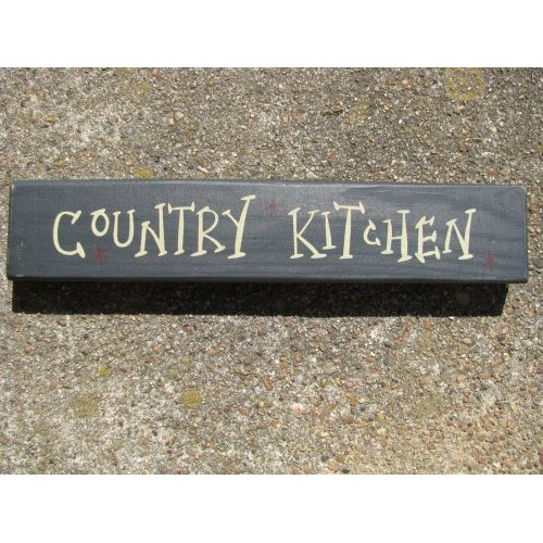 M9004CK- Country Kitchen wood block,measures 9 inches wide by 1 3/4 inches high. Dark Blue with cream letters