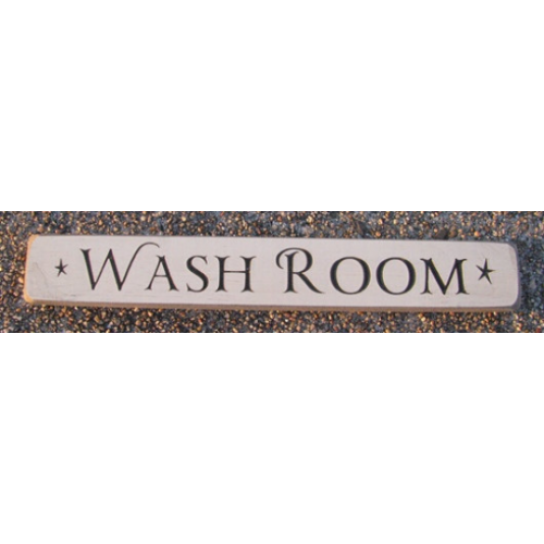 engraved with "Wash Room" in bold, looping script, accented w/stars