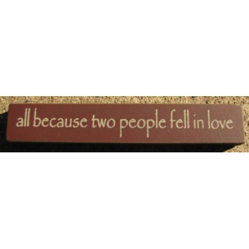 32324LM-All Because Two People fell in love mini block, measures 6 inches wide by 1 inch high, Burgundy in color with off white lettering