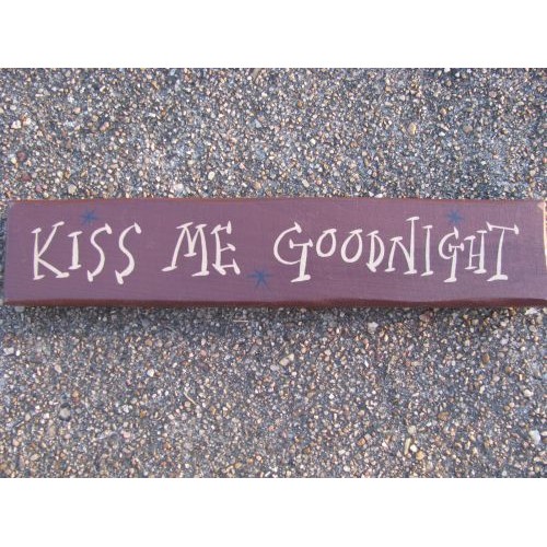 9007KMG- Kiss Me Goodnight wood block,measures 9 inches wide by 1 3/4 inches high and Burgundy with cream letters