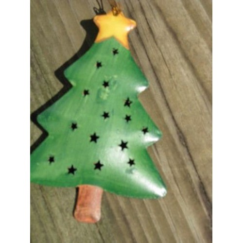 OR301 Christmas Tree - 2 3/4 " x 4"- Metal 3 dimensional punched tin - Painted on both sides Hangs by wire
