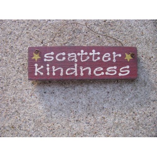 60077SK - Scatter Kindness wood sign measures 6 inches wide by 1 3/4 inches high and hangs by wire. Handmade in America
