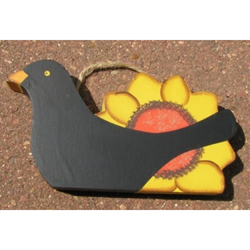 CH25 - Crow Sunflower, measures 4 inches wide by 3 1/2 inches high, hangs by jute