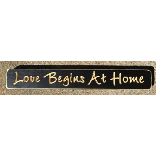Primitive Wood Engraved Block 12 Love Begins at Home