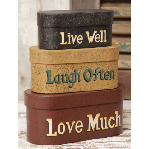 Tags: nesting boxes, live laugh love, set of 3 boxes, primitive decor, home decor