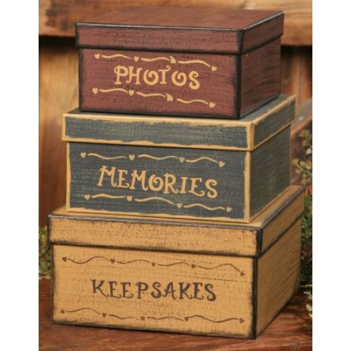 3B1304-Photos Memories Keepsakes set of 3 nesting boxes