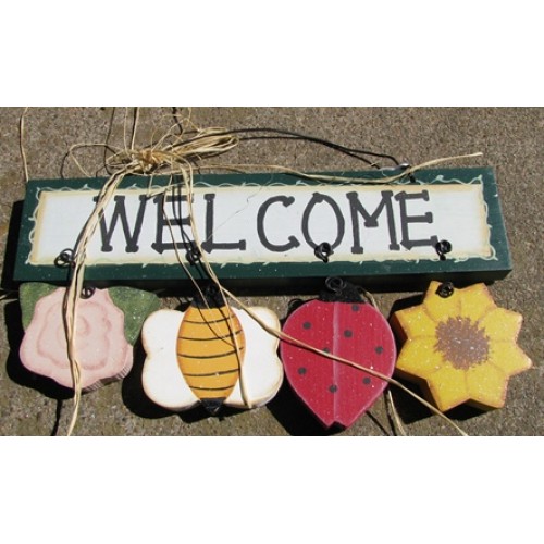 GS301 - Welcome Flower Bee ladybug sunflower wood sign