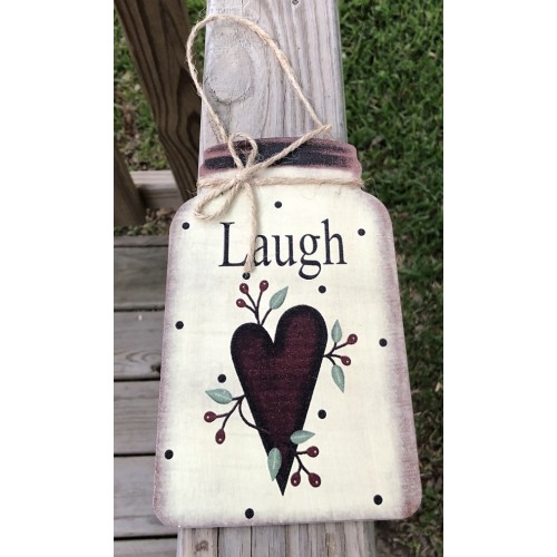 Primitive Decor Laugh w/berries and Heart Mason Jar
