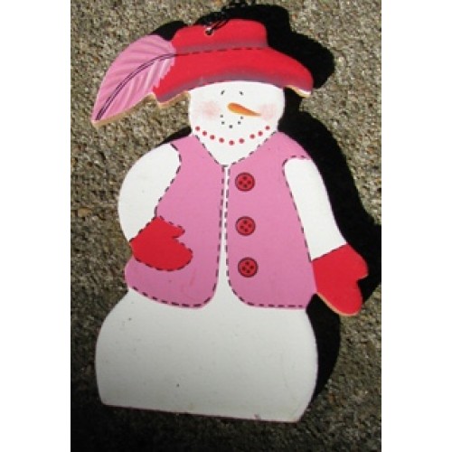 1247S - Red Hat Snowman ornament, measures 4 1/2 inches tall by 2 1/4 inches wide. Hangs by wire. Great gifts for a Red Hat person.