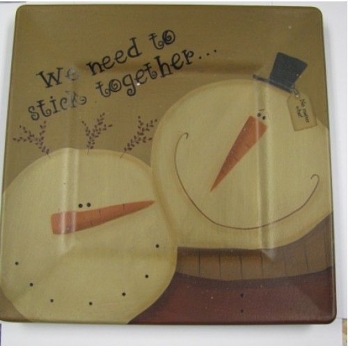 31492W - Snowman Plate We need to stick together, measures 10 inches squared