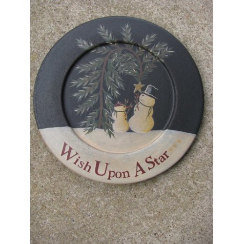 Primitive Wood Snowman Plate 31669- Wish Upon a Star Plate,measures 9 3/4" Diameter