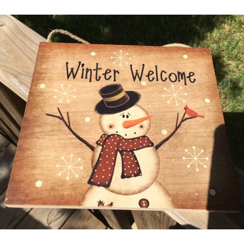 Primitive Wood Hanging Snowman 2426 Winter Welcome Sign