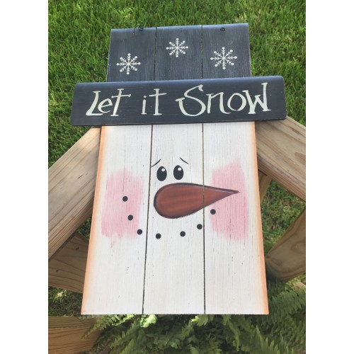 Snowman Face with Top hat that has 3 snowflakes painted on top of hat and across the brim Let It Snow is Written.