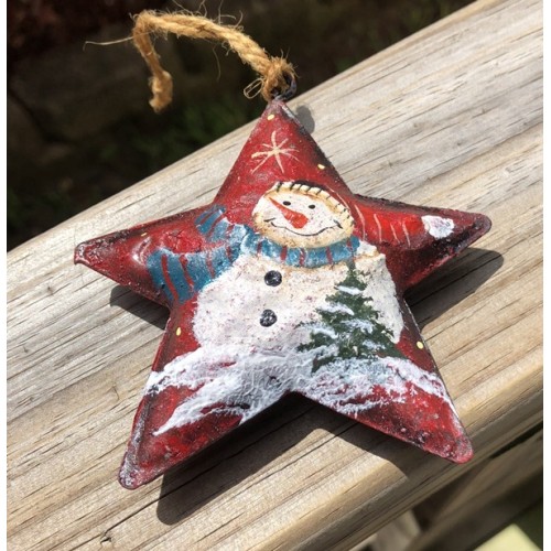 Tags: snowman ornament, gifts for a snowman collector, snowman decor, snowman metal star ornament, snowman, Christmas Ornaments
