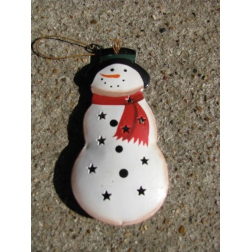 OR202 - Snowman Green Scarf Metal Christmas Ornament Hangs by wire 3 1/2" metal star..