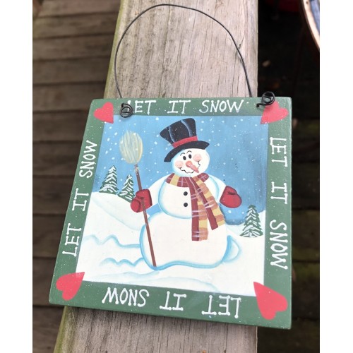 Wd1167 Let it Snow Snowman wood sign, measures 4 1/2 inches wide by 4 1/2 inches high, Hangs by wire.