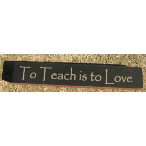 32322LB To Teach is to Love mini wood block, measures 6 inches wide by 1 inch high. Painted black with white writing.