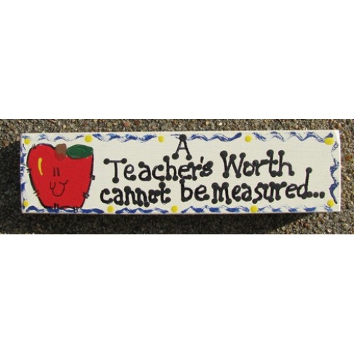 Teacher Wood Block that says "A Teacher's Worth Cannot be Measured"